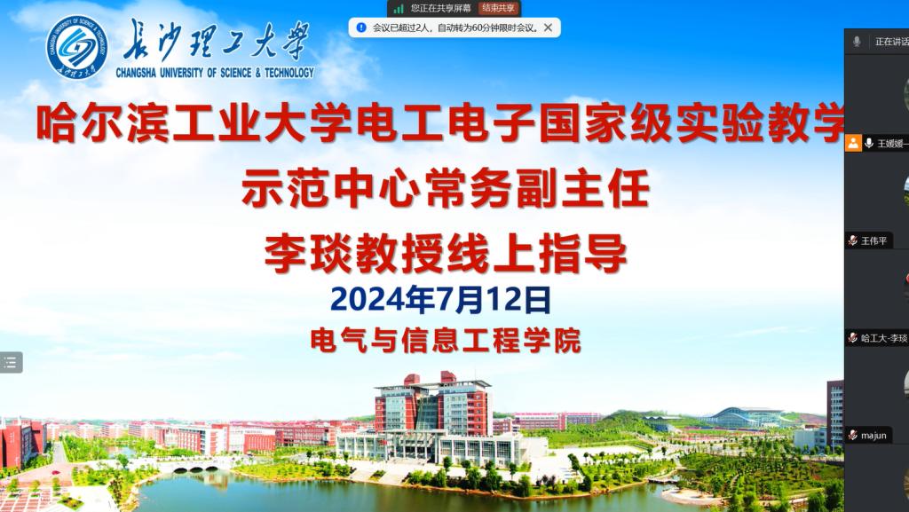 7 月 12 日,在电气学院副院长王媛媛的主持下,一场别开生面的学术报告通过腾讯会议举行。哈尔滨工业大学电工电子国家级实验教学示范中心常务副主任李琰教授应邀为我院教师作“以学生为中心,学习成效驱动的电工电子实验教学改革与实践”专题报告。湖南理工学院信息科学与工程学院院长童耀南带领其学院教师共同参加。