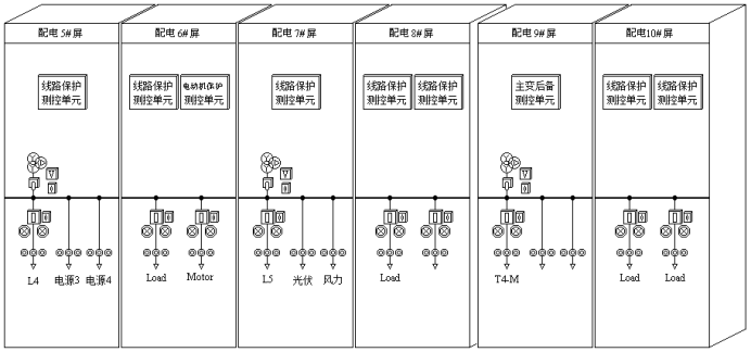 (6)配电站6#屏柜:配1个DCAP -5000线路保护测控箱(兼有中低压线路阶段电流保护及断路器测控功能)、1个DCAP-5010电动机保护测控箱(兼有电动机保护及断路器测控功能)。