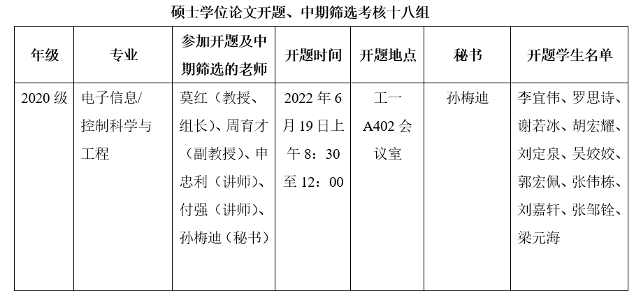 2022年研究生学位论文开题及中期筛选考核安排表(十二)