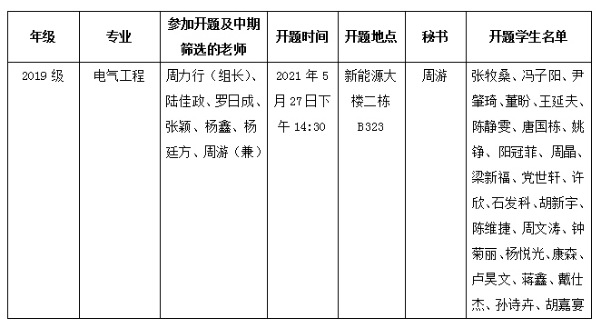 电气工程二组开题及中期筛选考核安排已公示,请大家提前填写好《永利集团88304官网研究生论文开题报告表》与《研究生中期筛选考核评定表》,做好答辩准备。