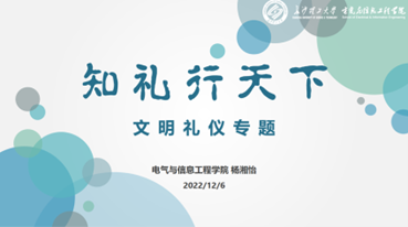 12月6日晚,电气学院开展“知礼行天下”文明礼仪专题线上讲座,由研究生辅导员杨湘怡主讲,电气学院2022级体研究生参加。