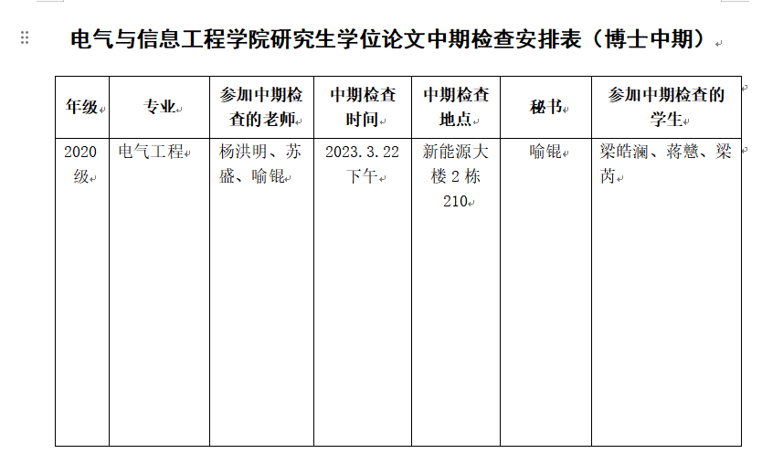 电气学院研究生学位论文中期检查安排表(二次中期)