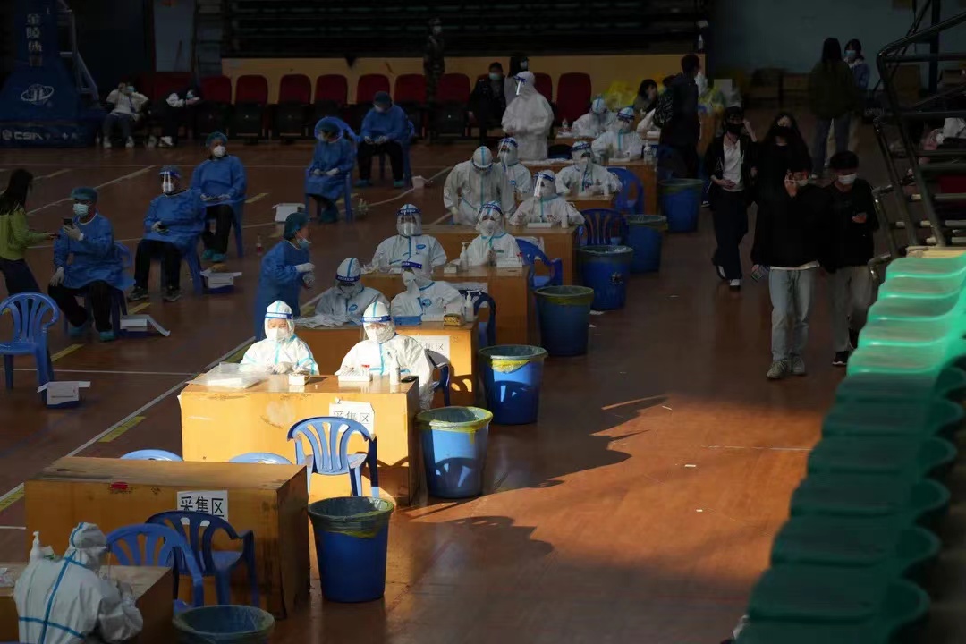 4月3日,22名教工党员参加了金盆岭校区10个核酸采集志愿服务工作,4小时完成5000多人的核酸采样。