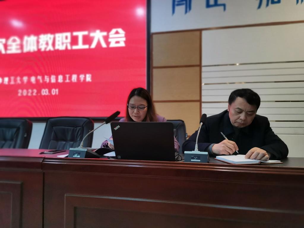 常务副院长杨洪明从党建、人才培养、学科发展、科学研究、师资队伍建设、完善内部治理体系等方面全方位解读了学院2022年工作要点。她强调,全院上下要高举习近平新时代中国特色社会主义思想伟大旗帜,以党的十九大和十九届历次全会精神为指引,贯彻落实湖南省第十二次党代会、学校第四次党代会精神,巩固深化拓展党史学习教育成果,落实立德树人根本任务,以“五大工程”建设为抓手,大力推进“三大基地”建设,在服务现代化新湖南建设和“百强”大学建设中展现电气担当与作为,以实际行动和优异成绩迎接党的二十大胜利召开。