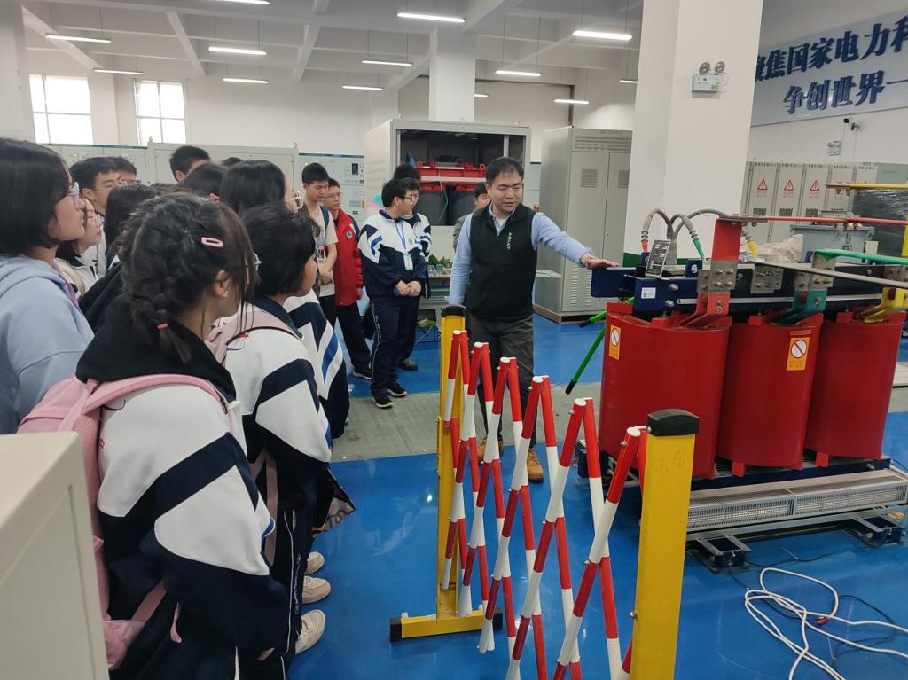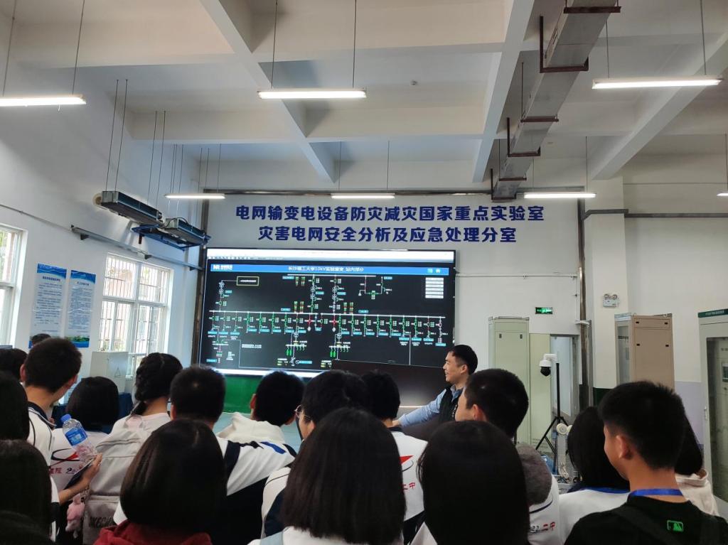 在志愿者的有序带领下,同学们来到实验室参观学习。老师们向大家展示了10kV真型配电网实验室中架空线路、电缆线路及开关站等真实电力设备,详细讲述了开展接地故障引发的人身触电、森林火灾、用户停电等研究。讲解过程中,老师们运用到高中生的物理、化学知识,使得讲解内容通俗易懂、易于接受。参观结束后,还组织同学们开展了研学活动分享会,老师引导同学们分享了学习参观过程的心得体会,并鼓励大家树理想、立大志。