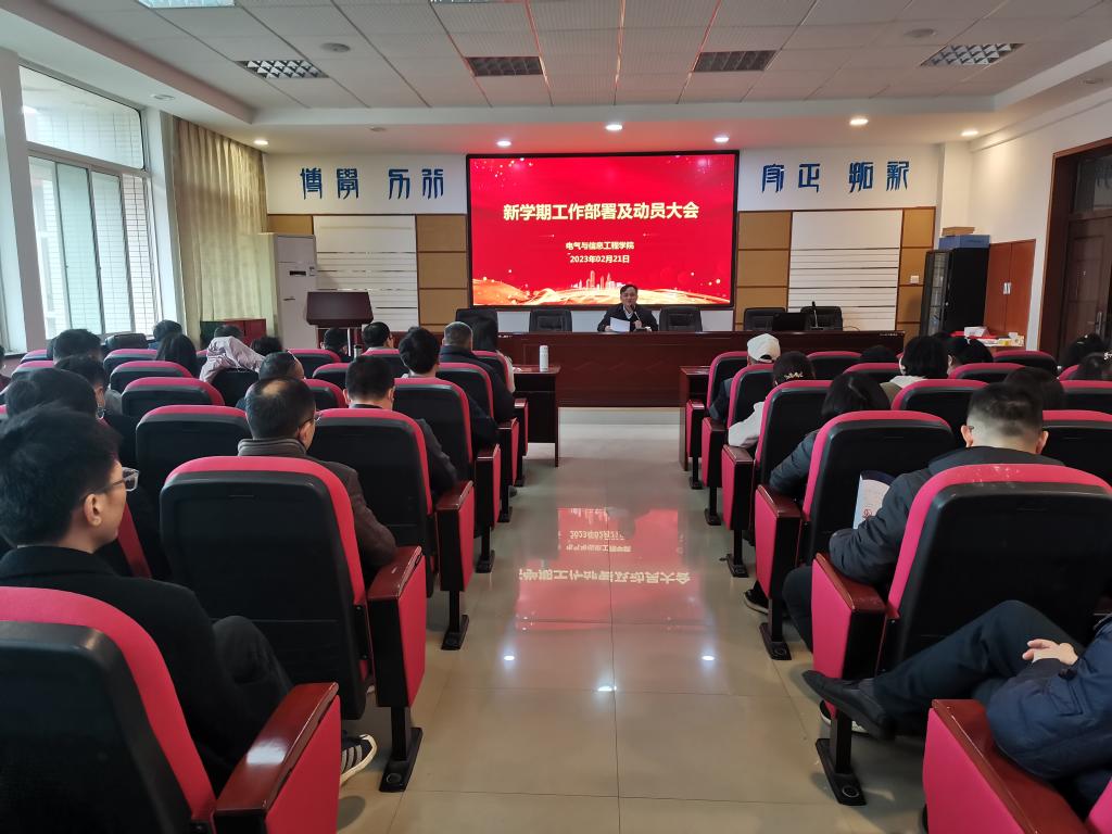 2月21日下午,学院新学期工作部署暨动员大会在工一B503召开,大会由院党委书记伍接朝主持,院领导班子全体成员及全院教职工参加。