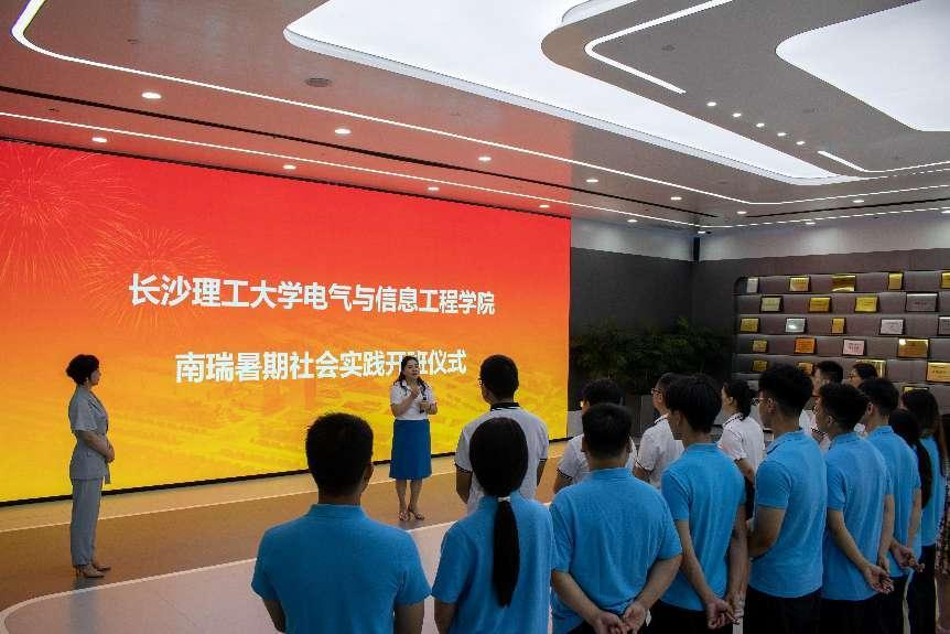 南瑞集团人力资源部副主任张岩接待了丁丹一行。丁丹感谢南瑞集团为学院学生提供暑期到公司研学实践的机会,希望借此机会,进一步深化与公司在科研合作、产教融合及人才培养等多方面的合作。张岩对丁丹一行到访表示欢迎,对学院长期以来在人才培养、科研合作等方面给予公司的支持表示感谢。她表示:永利集团88304官网在教学实践、人才培养等方面有着独到之处,期待双方继续扩大交流,深入合作,推动开启校企合作新篇章。会后举行了永利集团88304官网赴南瑞暑期社会实践队开班仪式。学院师生参观了集团展厅、电网数字技术实验室、调度自动化产品服务中心、系统保护实验室和南瑞集团职工活动中心等公司工作及后勤设施。