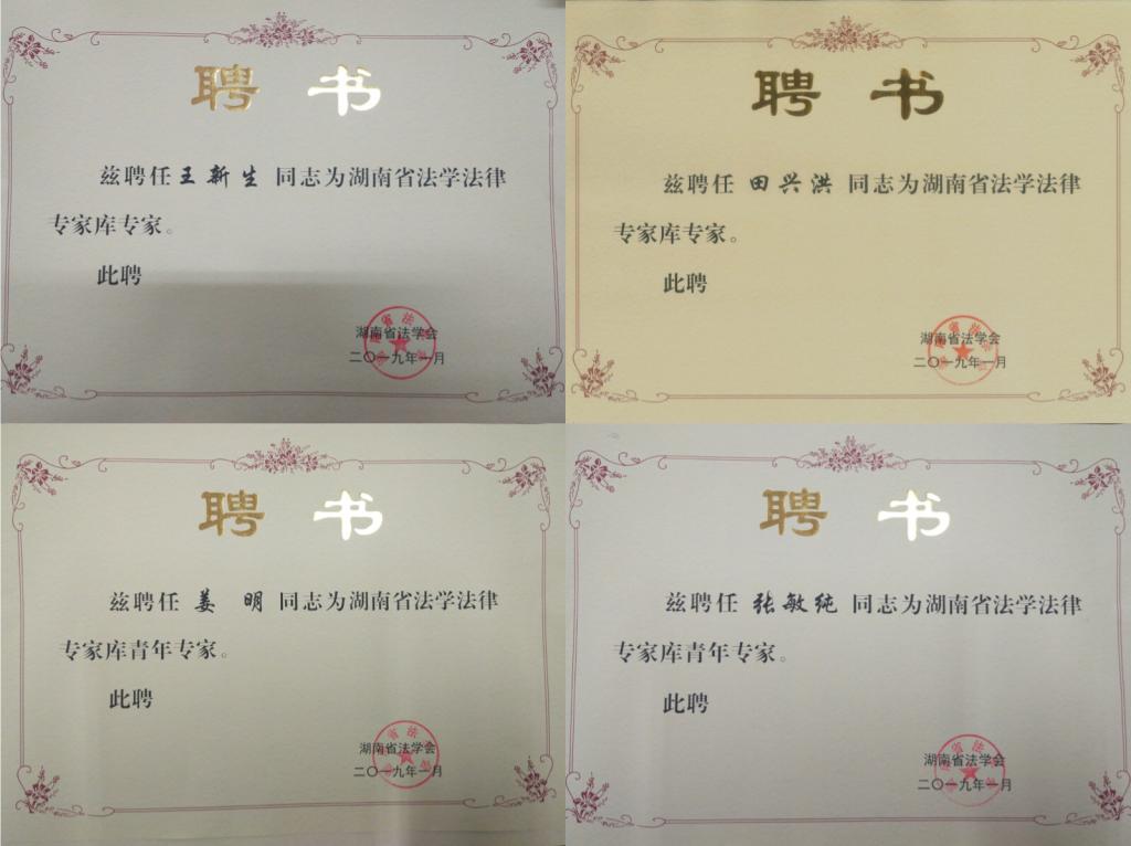 日前,湖南省政法委统一聘任158名同志为湖南省法学法律专家库首批专家,其中法学专家72名,法律专家68名,青年专家18名,永利官网王新生教授、田兴洪教授受聘为法学专家,张敏纯副教授、姜明副教授受聘为青年专家。