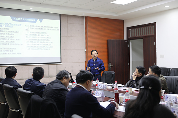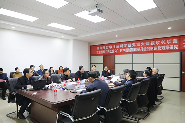317上午经济与管理学院刘建江教授主持的2018年教育部哲学社会科学研究重大课题攻关项目《发达国家再工业化对中国制造转型升级的影响及对策研究》在文科楼C502举行开题报告。党委书记付宏渊发表讲话副校长叶泽主持开题会