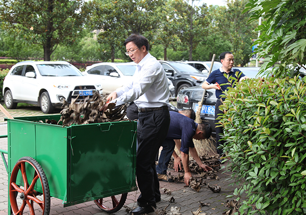 6月8日下午,炎炎夏日,校园里一片繁忙景象。校党委书记付宏渊,党委副书记邹宏如,校党委委员付嫦娥等校领导积极带头,学校机关和教辅单位的党员老师们热情高涨,争先恐后,纷纷拿起工具投入义务劳动。
