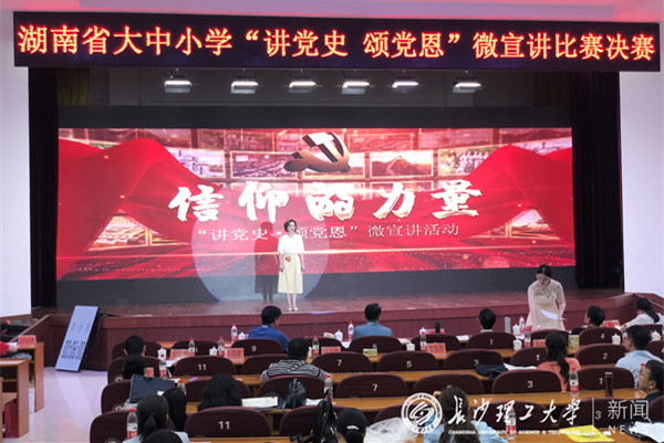湖南省大中小学“讲党史 颂党恩”微宣讲分为初赛、复赛和决赛三个阶段,历时两个月,全省各高校、市州教育(体)局均派选手参赛,全省共有高校组20位选手、中小学组10位选手进入决赛。比赛现场,选手们紧紧围绕党的百年光辉历史,讲故事、讲史实、讲道理,歌颂了中国共产党坚守初心使命、创造不朽业绩、孕育伟大精神的光辉历程。