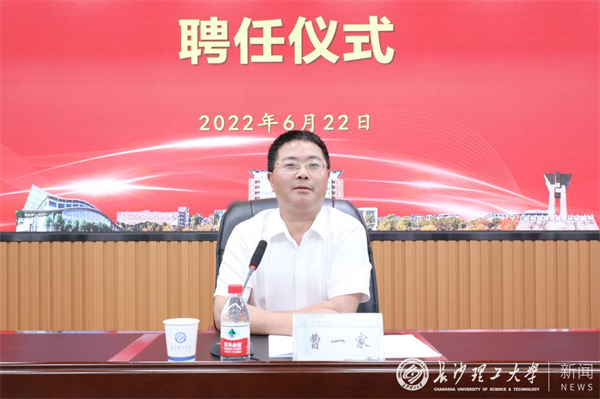 曹一家作了题为《奋进新征程,体现新担当,展现新作为,书写新时代高校教师立德树人的华丽篇章》的讲话。他表达了对收获教师成长硕果的激动之情,并充分肯定了新晋高级职称教师在立德树人、科研创新等方面取得的优异成绩和为学校建设发展做出的贡献。他强调,要深刻认识职称评聘在学校人才队伍建设中的重要地位;要立足学校现状,服务一流学科、一流专业等建设发展,加大人才培养支持力度,在促进人才队伍健康稳定发展中体现新担当;要赓续前行,心怀“国之大者”,在落实立德树人根本任务中展现新作为。