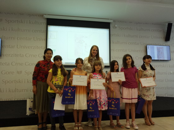颁奖典礼上,外方院长米莱娜介绍了上届绘画征文比赛,并介绍了黑大孔院汉语课程和留学项目,她表示:此次比赛,我们一共收到了各个中小学的200余幅作品,这是一个信号,也是一个新的突破。中方院长罗春霞对本次主题征文绘画比赛给予了高度肯定:大赛参与量大,受众广,有新意。孩子们虽然从未去过中国,但他们心怀中国梦,每处细节都表达了他们的奇思妙想,流露出对中国的喜爱。黑大孔院欢迎你们,中国欢迎你们!来自弗拉基米尔·纳察(Vladimir Nazor)小学的学生马迪亚说:“我心中的中国很美,你们看,我画了最喜欢的熊猫,还有国旗、龙、寺庙、太极、扇子。我真想快快长大,亲身去到中国。”