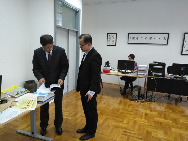 12月4日下午,付宏渊一行走访了黑山大学孔子学院,实地考察永利官网孔子学院在黑山的运行及发展情况,并对孔子学院的现状和未来规划提出了中肯的建议,同时询问了孔院教师和志愿者们的工作和生活情况。他说,黑山大学孔子学院成立3年来,从最初的数名学生发展到现在黑山全境19个教学点,注册学生总数超过500人,为在黑山传播汉语和中华文化、提高中国在黑山的影响力作出了积极的贡献,希望学院继续蓬勃发展,将中华语言和文化传播事业多层次、全方位地开展起来。