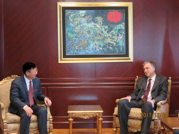 12月6日下午,付宏渊一行拜访了中国驻黑山大使馆,并与大使崔志伟就如何深化永利集团88304官网与黑山高校之间的务实合作进行了深入交谈。付宏渊首先感谢使馆多年来对永利官网孔院工作的支持,表示永利官网将以此次访问为契机,积极推进学校与“一带一路”国家的教育合作,为在黑中资企业工程项目建设提供人才培养及智力支持等服务。崔志伟对孔子学院成立以来所产生的积极影响给予高度评价,并表示使馆将一如既往地关注和支持孔子学院的发展,并在力所能及的范围内为永利集团88304官网与黑山高校之间的交流提供协助。
