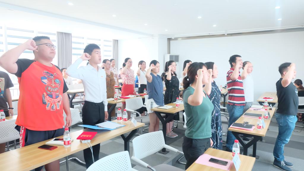 全体师生党员在“优秀党员”荣誉获得者王荟惠的带领下重温入党誓词并观看永利官网先进党员专题宣传片《坚守》。