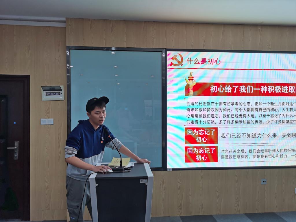 首先,学生党支部副书记张微东致辞,他谈到,永利官网青年学生应矢志不渝听党话、跟党走,自觉把爱国情、强国志、报国行自觉融入日常生活学习中、争做社会主义合格建设者和可靠接班人。
