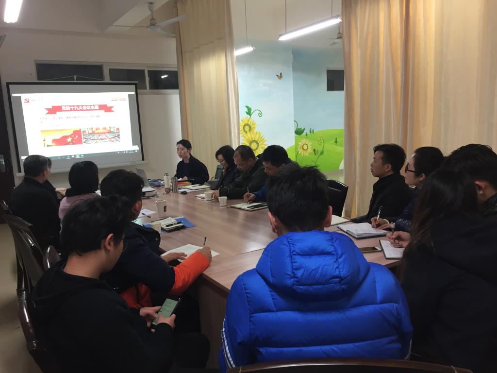 付嫦娥总结了蓝茵茵的生动宣讲。她表示,要认真学习、深刻领会并宣传贯彻党的十九大精神,还要结合学院实际就报告中的某一个专题再开展深入学习。报告引起了在座师生的强烈共鸣,刘森峙老师表示要牢记初心和使命做好学生辅导员工作,彭科达同学表示要在同学中体现党员先进性。