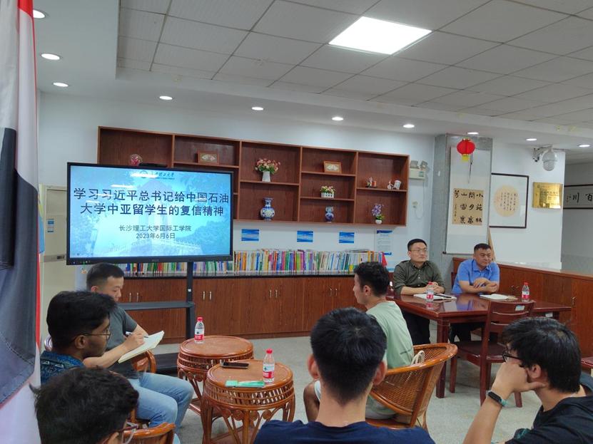 6月6日下午,来自乌兹别克斯坦、塔吉克斯坦、巴基斯坦、孟加拉国、摩洛哥等国的近三十名留学生代表齐聚一堂,共同学习习近平主席给中国石油大学(北京)中亚留学生的回信,领悟复信精神,并就回信谈论自己的想法。国际工学院党总支书记王学成、党总支副书记兼副院长乔法光以及留学生工作部全体成员参与学习讨论。