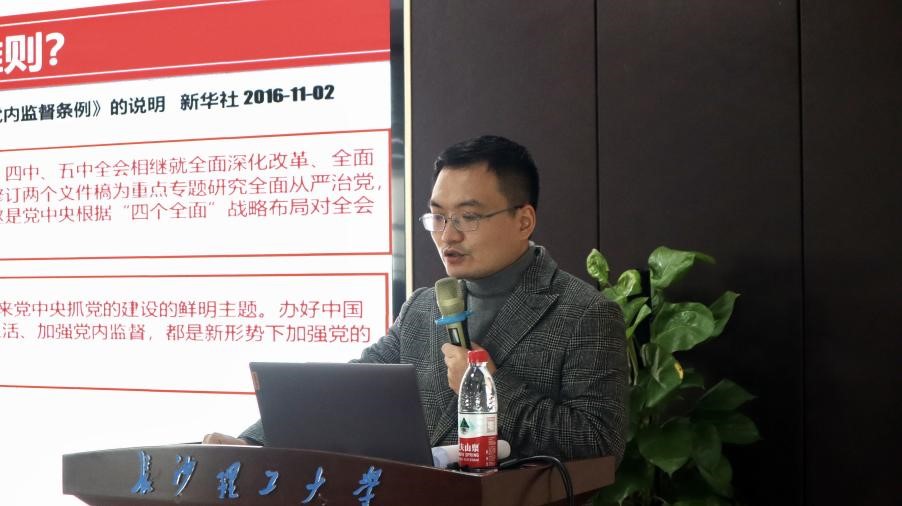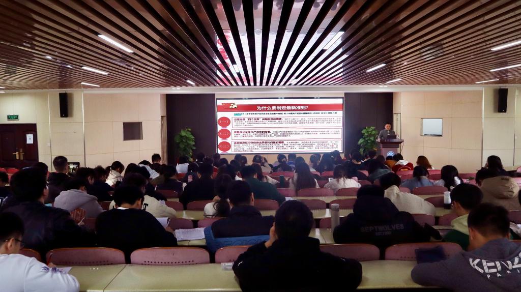 1114日,党总支书记王学成在工科三号楼A307作题为《关于新形势下党内政治生活的若干准则》专题党课,国际工学院全体学生党员参加。