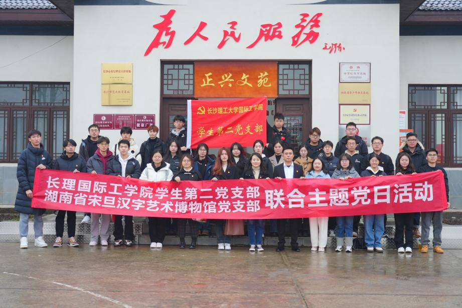 (3月5日,国际工学院学生第二党支部联合湖南省宋旦汉字艺术博物馆在长沙望城团山湖正兴文苑开展主题党日活动