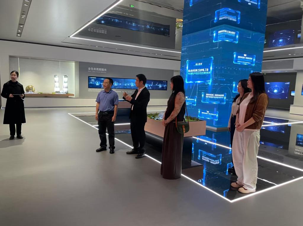 在中国联合工程有限公司,学院一行参观企业文化展厅并与公司第二工业设计研究院常务副院长匡中付,以及相关部门负责人开展座谈。匡中付介绍了企业发展历程、业务范围、人才培养路径以及公司在“一带一路”沿线国家的涉外工程布局及国际化人才需求,强调既需具备扎实专业能力的工程技术人才,也需拥有跨文化沟通能力的复合型人才。黄自力介绍了学校国际化发展情况、学院国际化人才特色培养体系以及毕业生在海外工程项目中的就业优势。双方围绕行业发展趋势、企业人才培养机制及“一带一路”涉外工程人才需求展开深入探讨,一致同意在共建海外实习基地、开设“一带一路”工程案例课程、联合开展跨国项目研究等方面加强合作。匡中付表示:“学校与学院的国际化办学定位与公司海外业务高度契合,期待通过校企协同培养一批‘懂技术、精规范、通语言、善协作’的海外工程精英。”