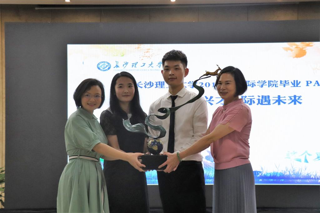 Afterwards, a graduate representative presented a commemorative gift to the International College. Wuyang Shufan, the graduate representative of the Chinese-Foreign Joint Education Program, and Chouiha Ahmed H N, the representative of the Algerian graduates, delivered their speeches, expressing their gratitude to the school and the teachers and ommitting that they will continue to carry forward the spirit of the "paving stone" adhered to by CSUST people in their future life and studies, with a view to making a contribution to the progress of the society.