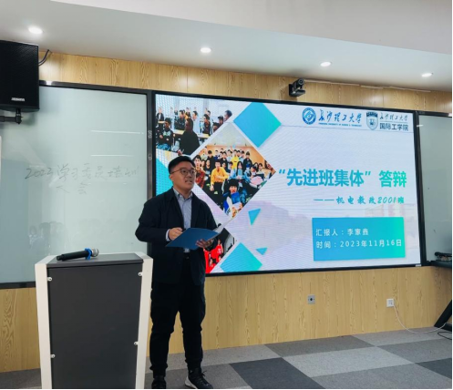 11月16日下午,国际工学院在新能源大楼1栋402会议室召开2023年“先进班集体”验收评比会议。学院党总支副书记兼副院长乔法光、特邀党建组织员李争流、学工办全体辅导员、班级学生干部代表共90余人参与本次会议。