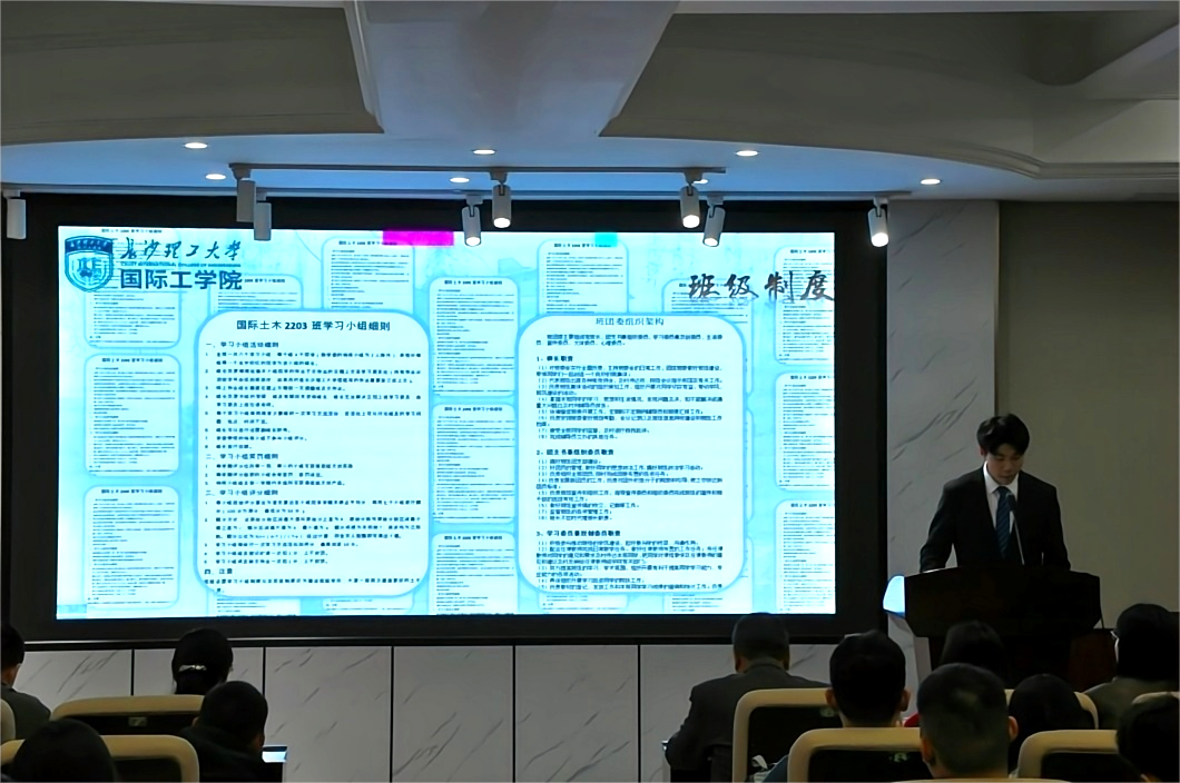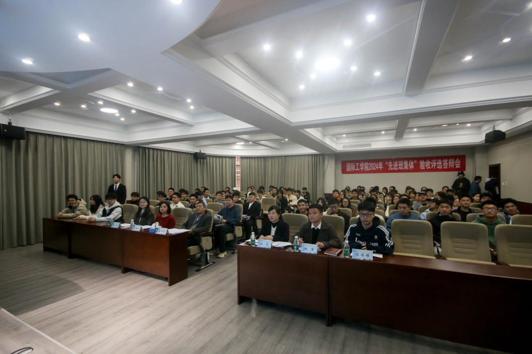 11月19日下午,国际工学院于云塘校区文科楼D207报告厅召开“先进班集体”验收评比会议。本次会议由学院特邀党建组织员李争流、教务办主任余志、学工办辅导员老师担任评委,13个先进班集体候选班级、各班级班委代表共90余人参会。