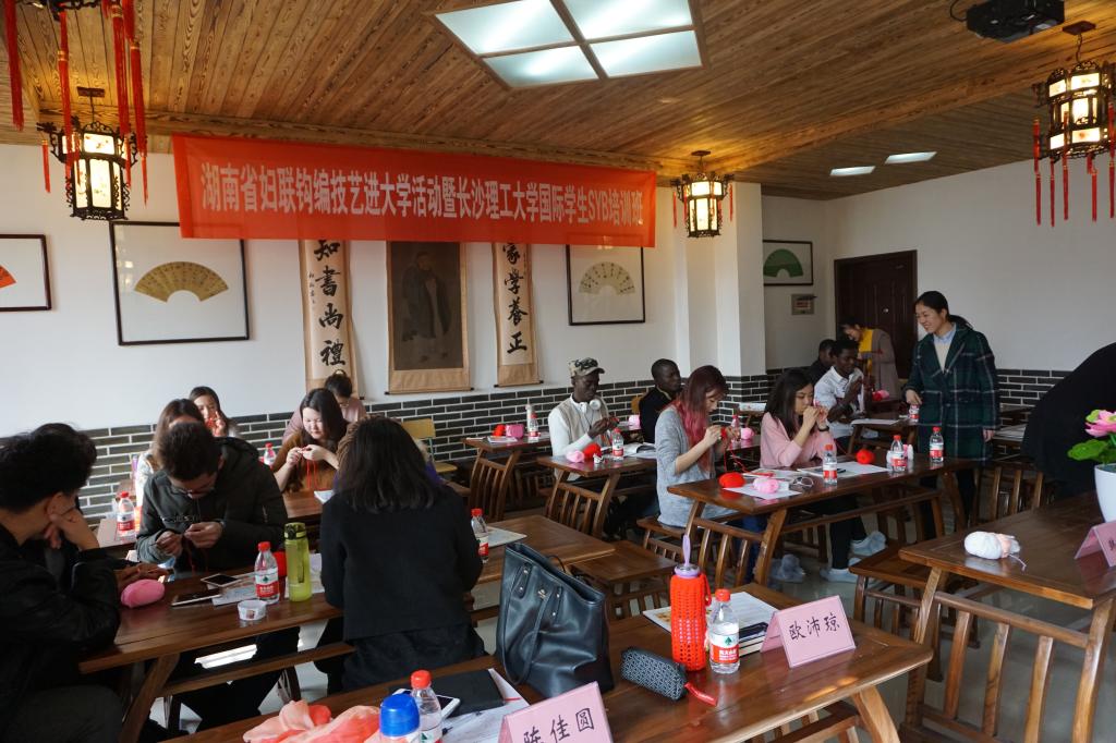 在十九大报告中,习近平总书记强调鼓励大学生“大众创业、万众创新”是中国持续的发展动力。为进一步加强对留学生的创新创业教育,提高他们的创业意识和技能,促进国际友好交流,引导更多留学生了解中国“非遗”文化,促进“一带一路”指尖技艺传承,国际学院举办“湖南省妇联钩编技艺进大学活动暨永利集团88304官网国际学生SYB培训班”。