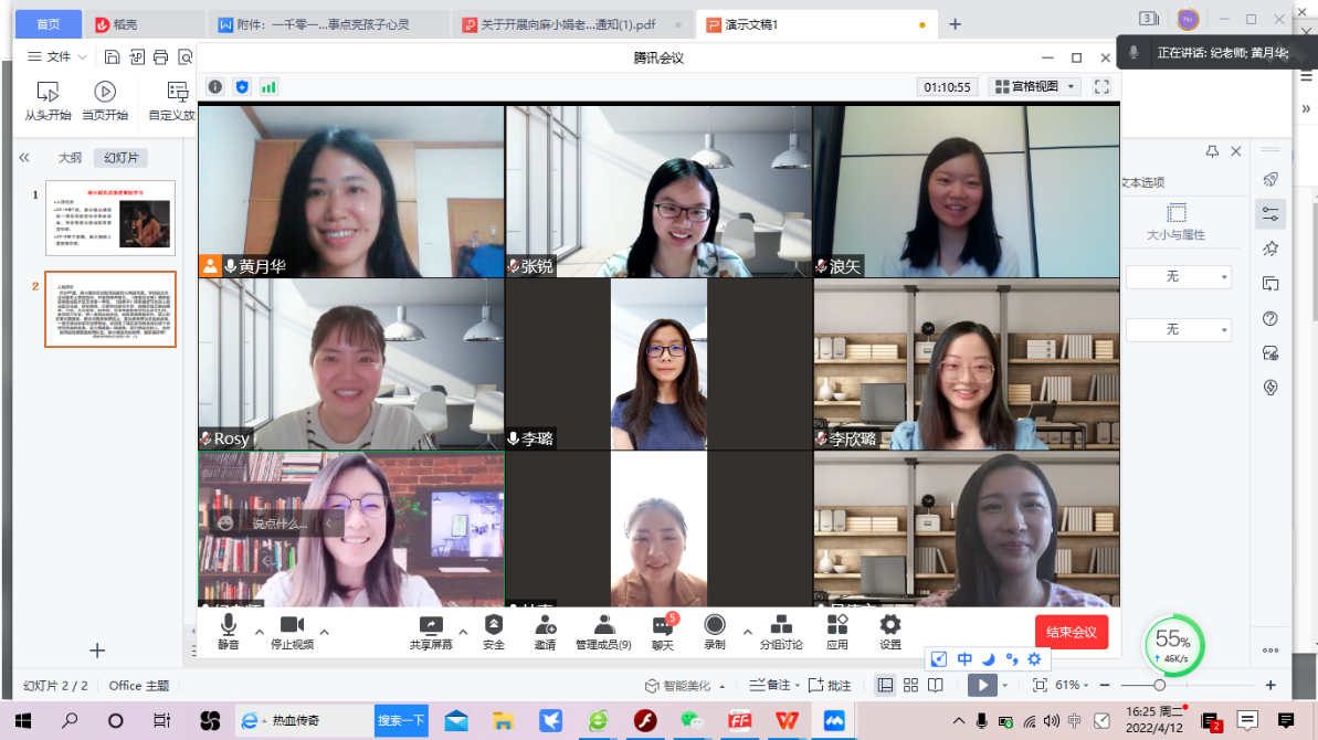 学校下发“关于开展向麻小娟老师学习活动”的通知以来,语言教学系各位老师积极学习麻小娟老师的优秀事迹。经过一段时间的自主学习,语言教学系于4月12日举行了“学习麻小娟优秀事迹”专题线上会议,进行集中学习和专题讨论。本次会议由黄月华副院长主持,语言教学系全体教师参与了本次会议。