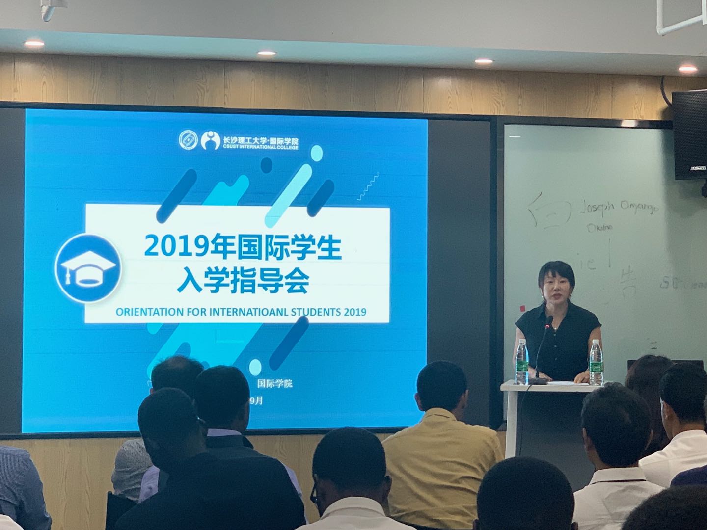 首先,甘海鹰代表学院向全新生的到来表示了热烈欢迎,并向同学们介绍了学校、学院以及来华留学生的办学情况。她对大家即将在中国开始的学习和生活提出了要求,并殷切祝福全体新生在华学业有成、生活愉快。