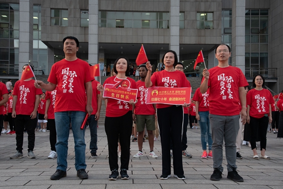 最后,国际学院全体师生手举国旗齐声高喊“祝伟大的祖国生日快乐,祝新时代华夏繁荣昌盛”,为中华人民共和国成立70周年献上深情祝福。