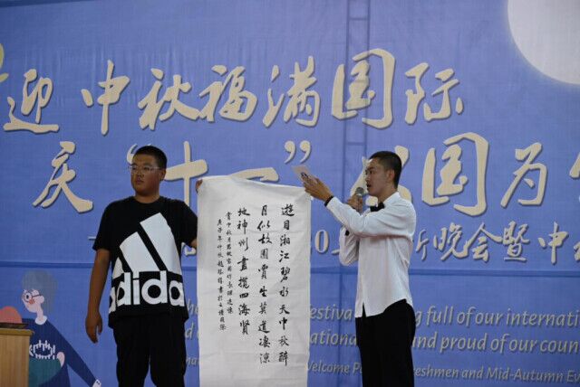“最爱湘江两岸山,中秋醉月似故园。贾生莫道凄凉地,神州尽揽四海贤。”国际学子化笔墨为桥梁、化诗书为言语,欢聚一堂共庆双节。10月1日,在永利集团88304官网国际学院2020年中秋晚会暨国庆晚会上,中国学子现场题诗,并带领来华留学生尝试书法,加强了来华留学生知华友华,促进了中外学生的友好交流,也进一步激发国际学子的爱国热情,弘扬中国传统文化。