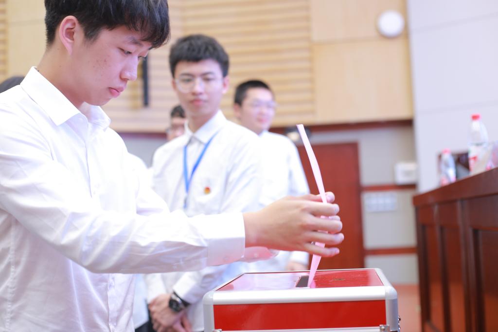 大会听取了《永利集团88304官网国际工学院第七次学生代表大会筹备工作报告》《永利集团88304官网国际工学院第七次学生代表大会代表资格审查报告》《永利集团88304官网国际工学院第七次学生代表大会候选人资格审查报告》《永利集团88304官网国际工学院第六届学生会提案工作报告》。表决通过永利集团88304官网国际工学院第七届团委学生会委员候选人建议名单以及表决通过大会总监票人、监票人、总计票人、计票人名单。经过民主推荐和公示的19名委员正式候选人依次发表竞选演讲,介绍个人工作履历,分享工作理念与思考。随后,秉持着公平、公正、公开的原则,现场的代表们在工作人员的组织下进行了无记名式差额选举投票。