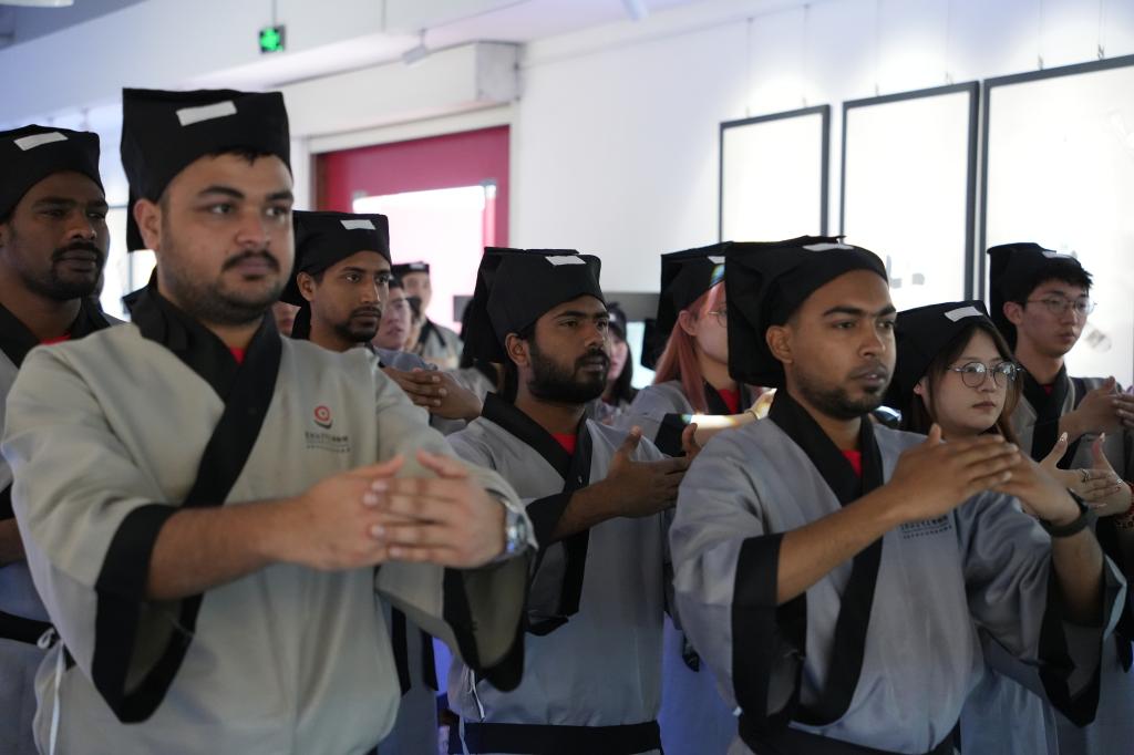 在活动中,来自越南的黄玉天庄同学有感触地说:“中国汉字博大精深,我看到宋旦老师创作的有舍才有得,就如鱼与熊掌,我们无法两者兼得,世界上有这么多不同的国家和民族,我们同住一个地球村,如果大家能够求同存异,尊重不同的文化习俗,那么我们一定会得到一个更和平的世界。”来自苏丹的周凯同学也动情表达,他说:“在中国生活、学习的这段时间里,我收获了老师、朋友们无微不至的关照,他们用心爱着我,让我相信汉字拥有最强大的疗愈功能,让我能敞开心扉,更快地融入到全新的环境之中。”