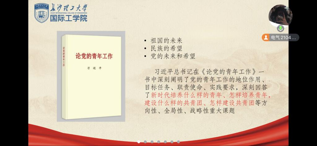 7月中下旬,国际工学院组织开展了学生干部暑期理论学习提升训练营,先后组织3期学生干部线上理论学习培训。国际工学院团委书记马玉文、全体团委学生会成员参与此次培训。