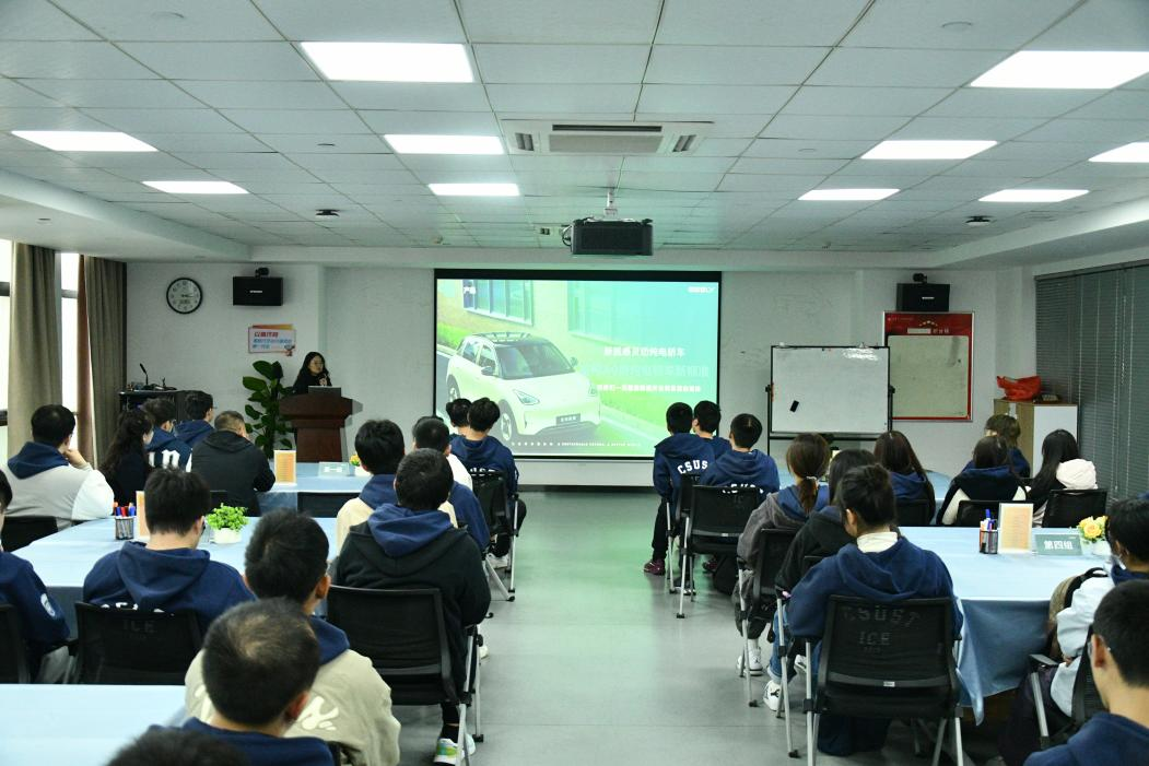 随后,以“智能汽车行业对高校人才的需求与展望”为题,采用“小课堂”微研讨的互动形式,由公司人力资源经理高翠蓉主讲。她从汽车行业的趋势洞察、人才需求趋势以及实习求职建议三大版块进行分享,从企业视角,提出对跨学科复合型高端人才的需求。