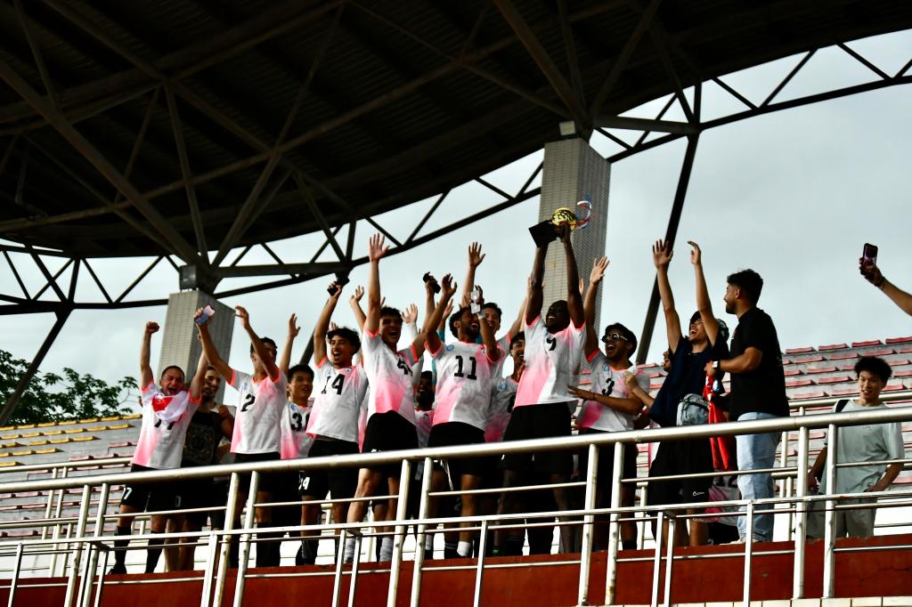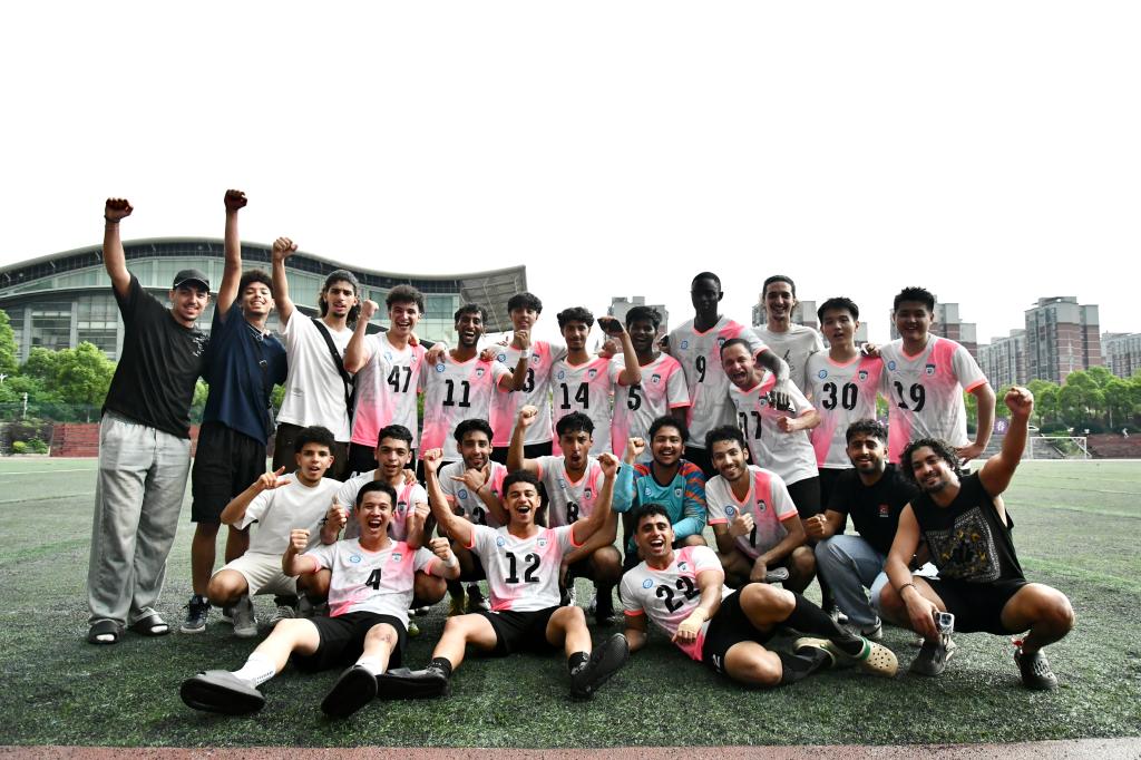 为备战本届赛事,国际工学院足球队提前三周展开选拔与集训,最终组建了一支由20名留学生和5名中国学生组成的国际化队伍。通过系统化的战术磨合与体能强化,球队以足球为纽带,进一步增进了中外学生的协作默契与文化交融。 足球决赛中,国际工学院凭借流畅的传切配合与高效的攻防转换锁定胜局,现场观众呐喊助威声此起彼伏。