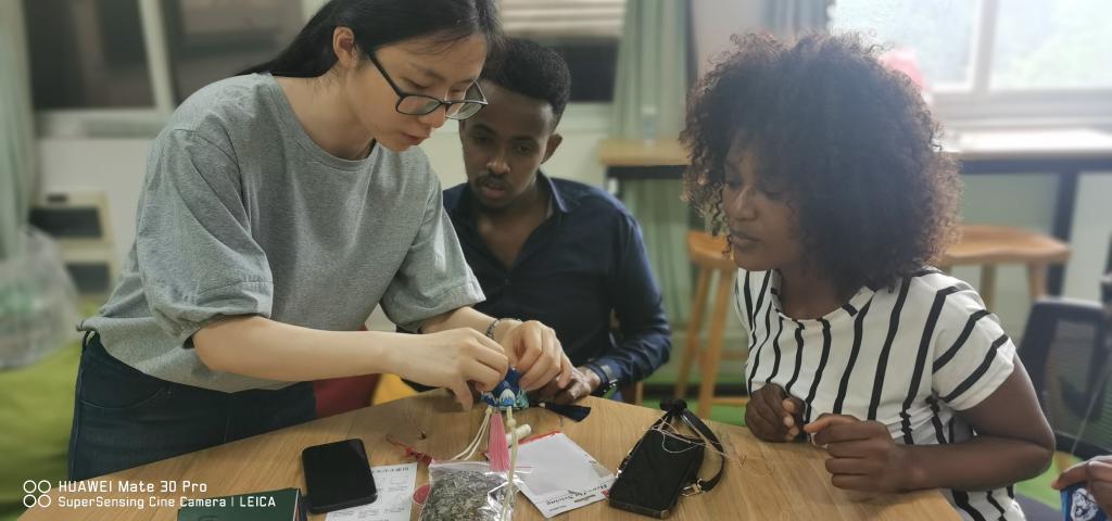 在活动上,汉语教研室李璐老师首先为留学生们介绍了端午节的起源以及习俗。听完关于屈原、粽子、赛龙舟的讲述,留学生们对端午节有了更深入的了解。随后他们拿起丝线,在老师的带领下学习缝制端午特色——五彩香囊。留学生们制作的香囊形态各异,虽然他们的线条歪歪扭扭,但绣出了节日的祝福以及对中华文化的热爱。