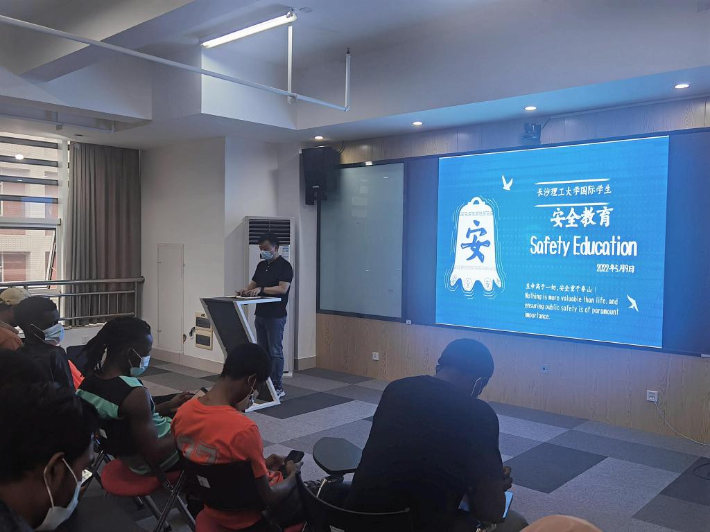 心理健康普查结束后,王荟惠结合校内建筑物安全、校园周边学生聚集经营场所安全、实验室安全、食品安全、校内消防与交通安全、防溺水、疫情防控等内容对全体在华国际学生进行了安全教育。乔法光强调生命高于一切,安全重于泰山,并要求大家遵守相关规定,增强日常安全和健康防护意识。