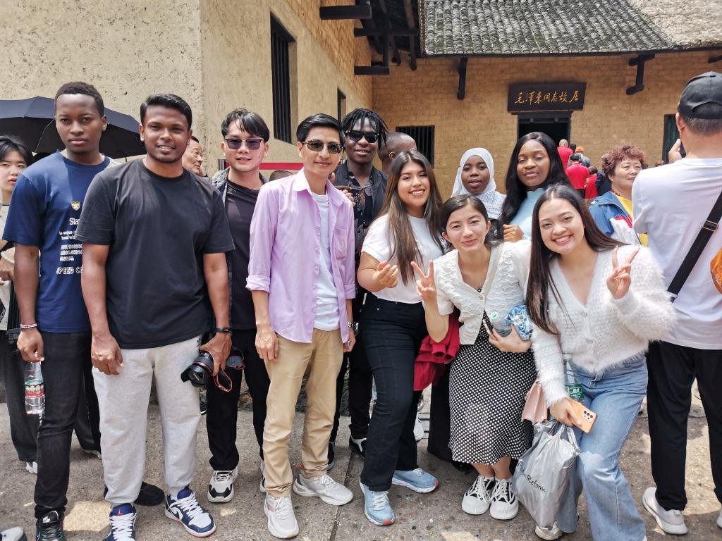 留学生们首先来到毛泽东广场,瞻仰毛泽东同志铜像。随后参观了韶山毛泽东同志纪念馆和毛泽东同志故居。在纪念馆生平展区,大家认真观看展区内陈列的文献资料、历史图片和珍贵文物,结合展板上的英文介绍,了解一代伟人波澜壮阔的一生。走出纪念馆,孟加拉国留学生项羽感慨:“毛泽东是伟大的政治家、革命家,是新中国第一代领导人。我感受到了他对国家、工作的热爱和无私奉献。”