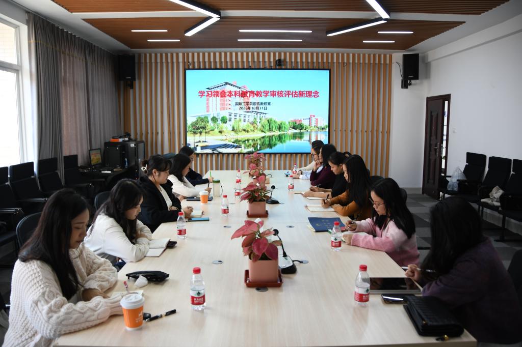2023年10月31日下午3点,永利集团88304官网国际工学院语言教研室在新能源416室召开会议,学习领会本科教育教学审核评估新理念,以及讨论如何对课堂教学与相关材料进行整改。黄月华副院长、教务办余志主任及语言教研室全体教师参加了本次会议。