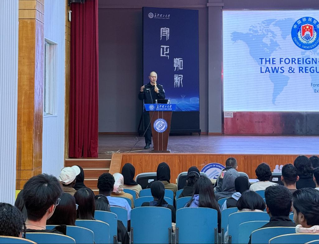 在留学生法制宣讲及培训中,长沙市出入境管理支队面向永利官网全体来华留学新生开展法制宣讲,民警刘成亮以“签证制度与出入境规范”为主题,从签证类型、申请流程、停留期限等方面作了专业讲解,结合真实案例剖析常见违规风险,帮助留学生全面掌握出入境合规要点;同时宣讲还聚焦安全防护,将防范电信诈骗与远离毒品并列作为重点内容,通过剖析典型案例揭示诈骗常见手法,传授“不轻信、不透露、不转账”的防骗要领,并深入讲解毒品危害及中国禁毒法律法规,警示留学生远离涉毒违法犯罪,全面筑牢合规与安全双重防线。