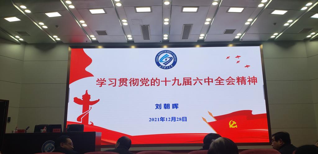 12月28日下午,副校长刘朝晖在图书馆报告厅为师生宣讲党的十九届六中全会精神。计通学院、物电学院、国际学院、创新创业学院4个学院的党政班子、全体教职工及部分学生代表共300人参加。宣讲会由计通学院党委书记刘宏伟主持。