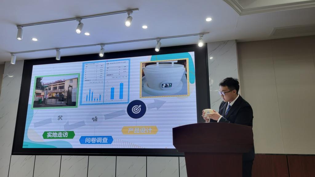来自中外合作办学项目土木、电气、机械专业的学生进行跨学科组队,充分运用专业知识储备,大胆发散创新思维。“通过学科交叉的方式为水质监测系统提供优良的解决方案,这是一个有益的探索”,在《绿境慧眼--面向用户的多场景AI绿色水质感知系统》小组展示完后,邓天文赞扬道。邓教授从创新性、可持续性、目标市场等方面对参赛项目逐一点评。在指导学科竞赛方面有着丰厚经验的赵斌教授认为对学术持有高度严谨的态度是做出高质量创新项目的重要前提。