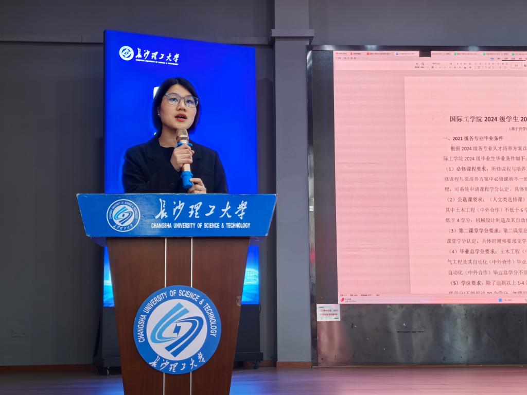 3月18日下午,国际工学院在学生活动中心科技报告厅召开2024级年级大会,本次年级大会的主题为“自信、独立、成长迈向更好的自己”。学院辅导员易芙蓉、熊英,教务办罗帅及全体2024级学生参会,会议由年级辅导员易芙蓉主持。
