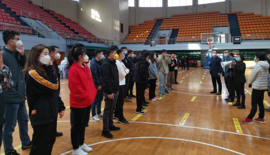 早上7点20分,全体志愿者准时到达金盆岭校区体育馆并集结完毕。在进行了简短的培训,学习并牢记相关操作流程和注意事项后,志愿者们迅速“全副武装”,穿戴好防护服、防护面罩、口罩、手套及鞋套,立即投入各自的岗位,开始紧张而忙碌的工作。