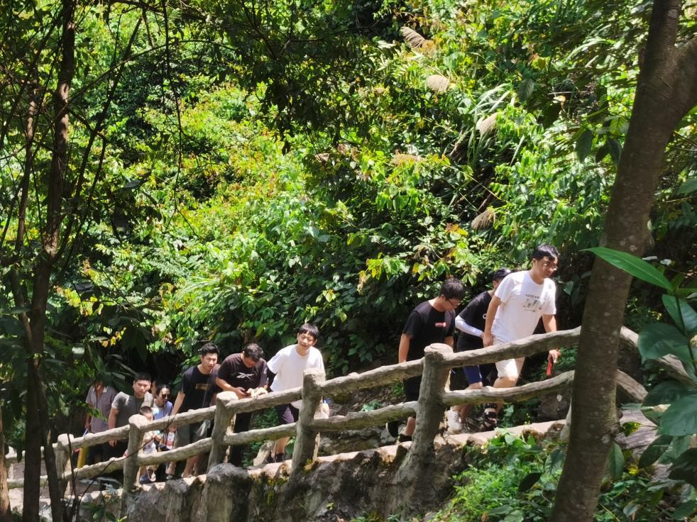 炎日当空没能阻挡大家欢快的脚步,早早地整装待发,统一乘车来到了景色秀丽、清爽怡人的皇龙峡。上午,在流水潺潺、清风相伴的峡谷中,激烈的溯溪登山比赛拉开序幕。一队由总经理任宇带队,二队、三队分别由副总经理郭鑫、喻伟带队,大家激情高涨,你追我赶,争先恐后;有的爬阶梯,有的攀悬索,有的过吊桥,有的踏木桩,一路溯溪而上,朝着目的地奋勇前进,率先抵达终点的队员获得了优先选择漂流水战武器的“奖励”。