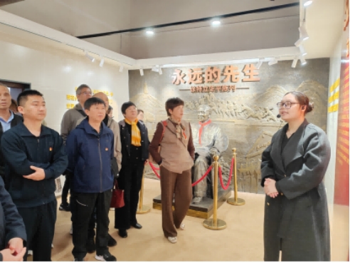 徐特立故居纪念馆宁静肃穆,绿荫掩映,古木耸立。在讲解员的深情讲述中,全体党员依次参观了“坚强的老战士”“杰出的教育家”“一代师表革命楷模”三个主题展厅。详实的历史资料与珍贵的文物,生动再现了徐特立同志“光荣的一生、伟大的一生、革命的一生”的壮阔历程,深刻诠释了他“革命第一,工作第一,他人第一”的崇高品格。在场同志深受教育和震撼,无不为老一辈革命家坚定的理想信念与艰苦奋斗的优良作风所感动。